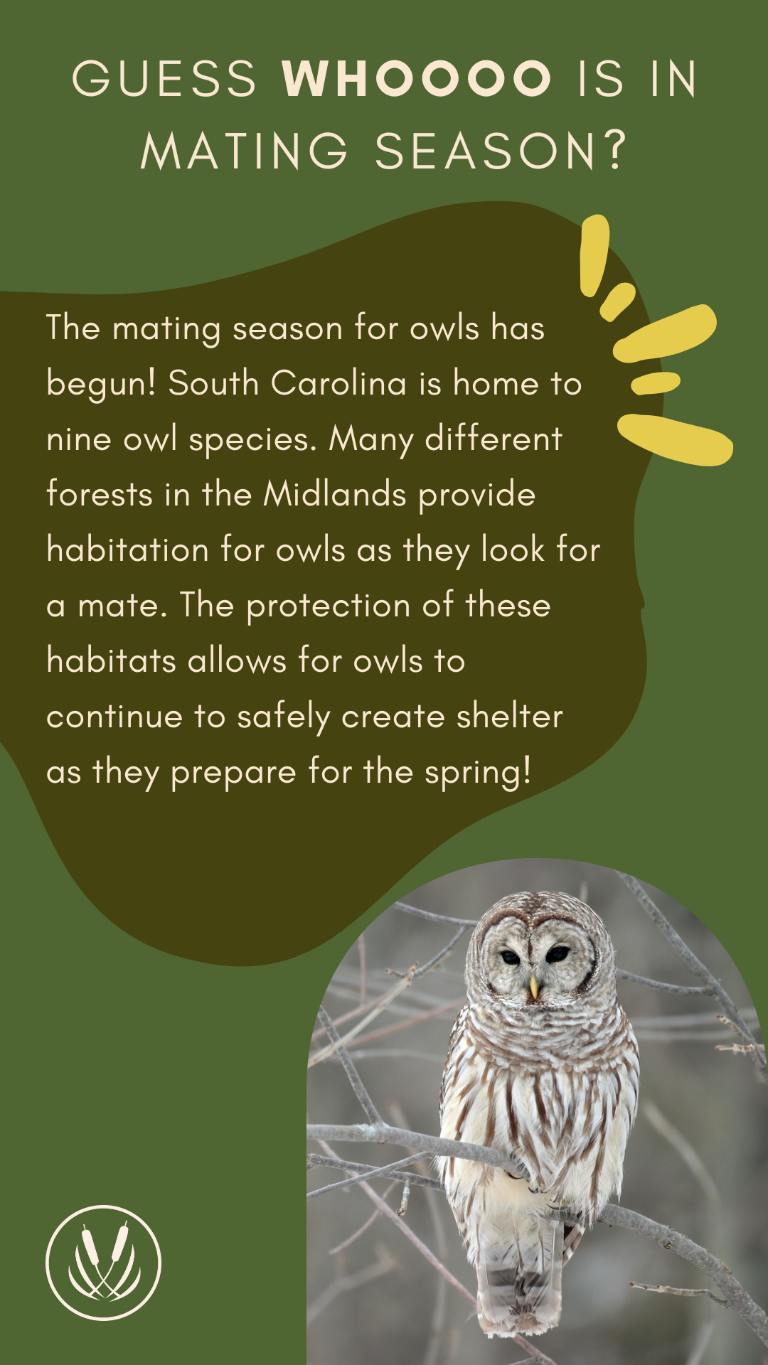 The COWASEE Basin is the name given to where the COngaree and WAteree Rivers converge with the SantEE. It is home to numerous plants and animals, which decorate the Midlands in biotic wonder. In the winter months, much of the basin’s nocturnal wildlife fall into hibernation, causing the frigid nights to be equally as quiet. Despite the extra long nights, most nocturnal animals are less active during the wintertime so they can conserve their energy. Food becomes less available as the temperature drops, causing wildlife to slow down and rest. With the spring equinox right around the corner, the days will begin to lengthen and the critters will emerge. Night life in the COWASEE Basin will become active again as nights start to get warmer. Though you may not see them, there are a wide variety of night-time creatures residing nearby. Here is what you should know about some nocturnal species in the area!